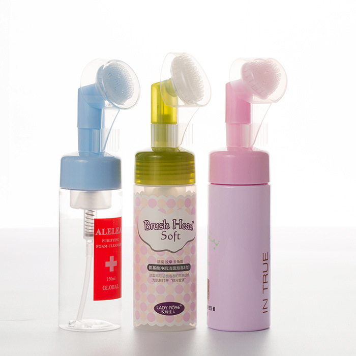 Soft Silicone Brush Head Foam Bottle Facial Cleanser Foaming Bottle Pet Press Facial Cleanser Mousse Bottle 100ml 120ml 150ml 200ml, Ang mapagpakumbabang bote ng bula ay sumasailalim sa isang pagbabagong pag -upgrade sa pagsasama ng isang malambot na ulo ng brush ng silicone, na lumilikha ng isang natatanging epektibong karanasan sa paglilinis ng mukha. Ang makabagong disenyo na ito ay nagbabago ng mga paglilinis ng likido sa isang mayaman, mabulok na micro-foam sa dispensing, na agad na inilalapat at na-masahe sa balat sa pamamagitan ng banayad, kalinisan na silicone bristles. Ang mga gumagamit ay nakikinabang mula sa isang sabay-sabay na proseso ng dalawang hakbang: masusing paglilinis na tinulungan ng kakayahan ng bula na itaas ang mga impurities at ang pinong pisikal na pag-iwas at pagpapasigla ng pore. Ito ay mainam para sa isang mabilis na pag-refresh ng umaga o isang malalim na paglilinis ng gabi, na nag-aalok ng paggamot na tulad ng spa na walang kahirap-hirap sa bahay, habang ang likas na hindi porous na likas na katangian ng silicone ay nagsisiguro ng higit na kalinisan kumpara sa mga tradisyunal na materyales sa brush.